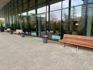 een bankje heeft gedoneerd. Zo staan er nu zes nieuwe